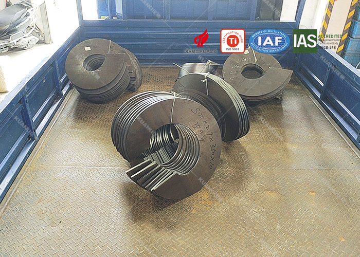 2023年6月13日南京**机械有限公司,单片等厚叶片发货现场,叶片尺寸:外径:500内径219螺距350厚度10,采用Q345锰钢焊接成连续螺旋,此叶片用于输送水泥余灰。