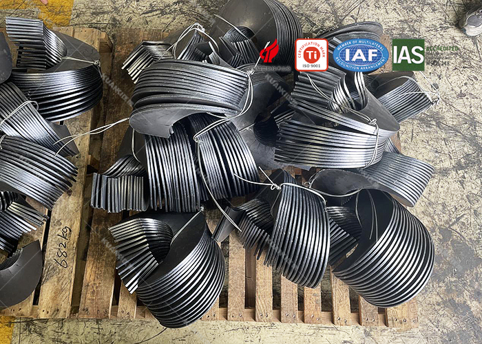 2023年6月28日,东台市**环保新能源有限公司 外径380内径121螺距300厚度6,左右旋各对半,单片等厚锰钢螺旋,用于双螺旋输送机。